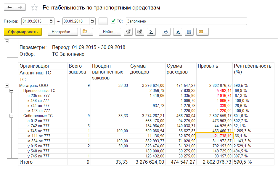 Программный продукт "1С:Предприятие 8. Управление автотранспортом Проф" предоставляет следующие возможности: