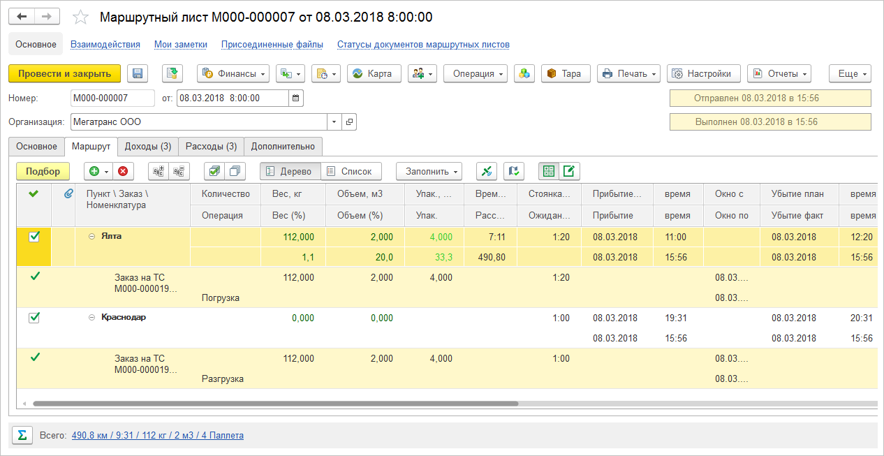 Маршрутные листы