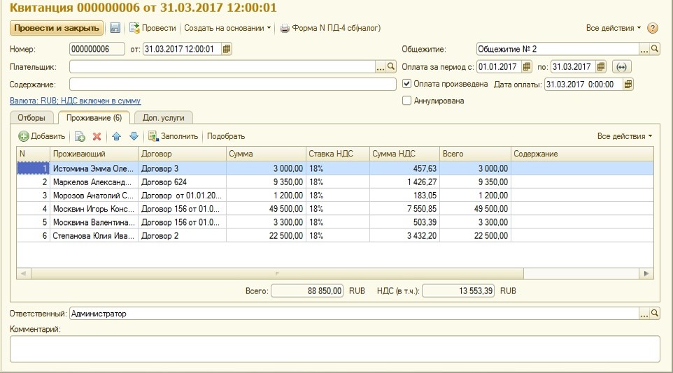 Учет движения денежных средств при оказании услуг проживания общежитиями