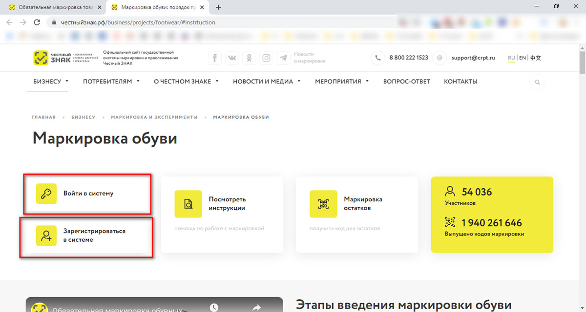 В качестве примера рассмотрим как подключаются система по табаку и обуви. Их запуск произошел недавно и до сих пор возникает большое количество вопросов.