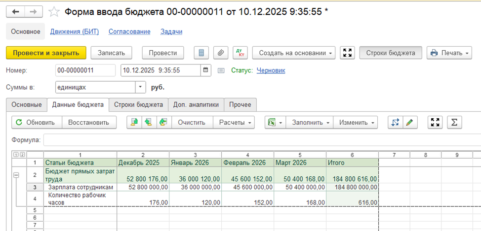 Бюджет прямых затрат труда в БИТ.ФИНАНС