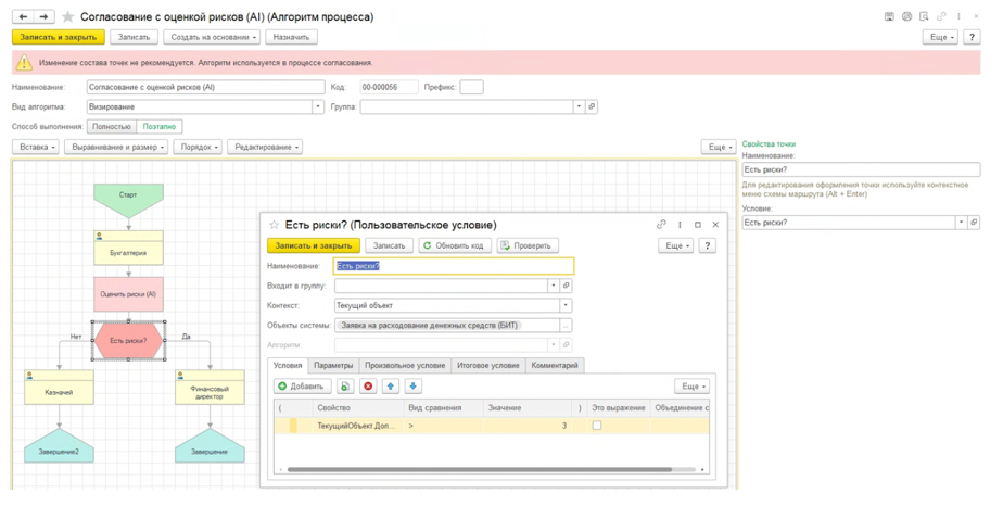 На основе заданных правил AI-модель присваивает платежу рейтинг риска с пояснением. В зависимости от уровня риска система автоматически выстраивает маршрут согласования: