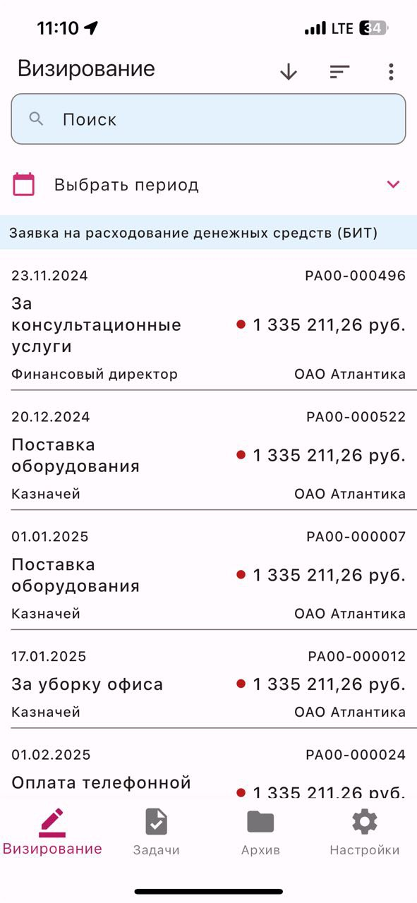 Мобильное приложение БИТ.ФИНАНС позволяет согласовывать документы и оперативно корректировать финансовую ситуацию компании вне офиса. С его помощью можно согласовывать заявки на расходование денежных средств и реестры платежей прямо с телефона, просматривать документы в реестре, их суммы и валюту, а также открывать их для ознакомления и согласования.