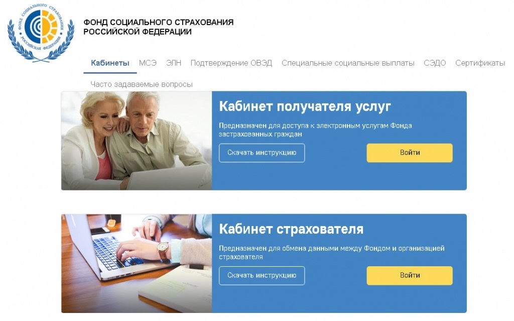 Заходить в личный кабинет нужно через официальный сайт ФСС.