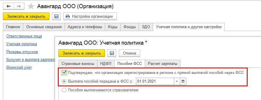 В программном коде прописана дата перехода на «Прямые выплаты» с 1 января 2021 года. В случае если в учетной политике не отразить дату перехода, механизм проекта будет запущен с 1 января автоматически. Всех сотрудников работодатель должен ознакомить с новым порядком выплаты пособий.
