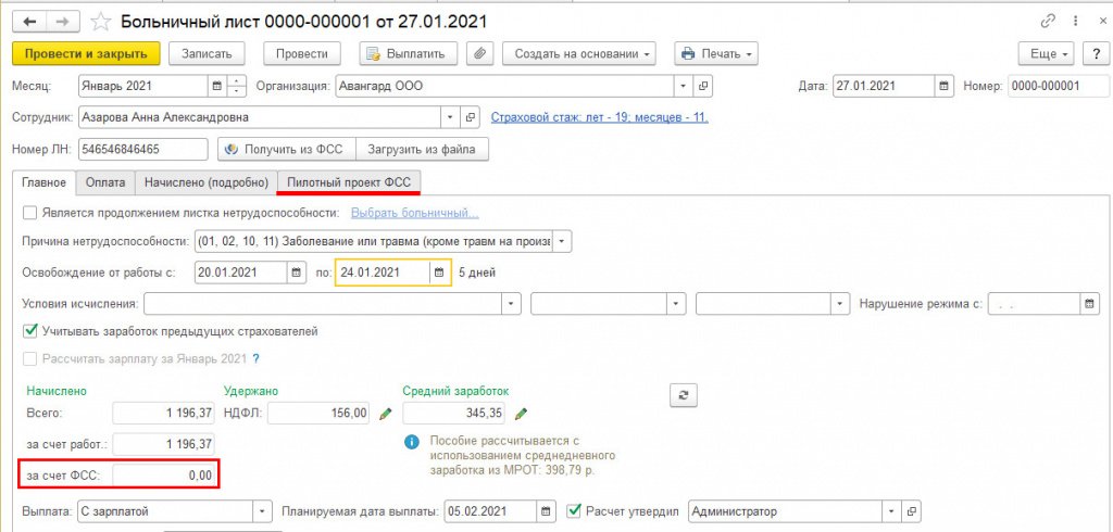 Пилотный проект ФСС в 1С:ЗУП