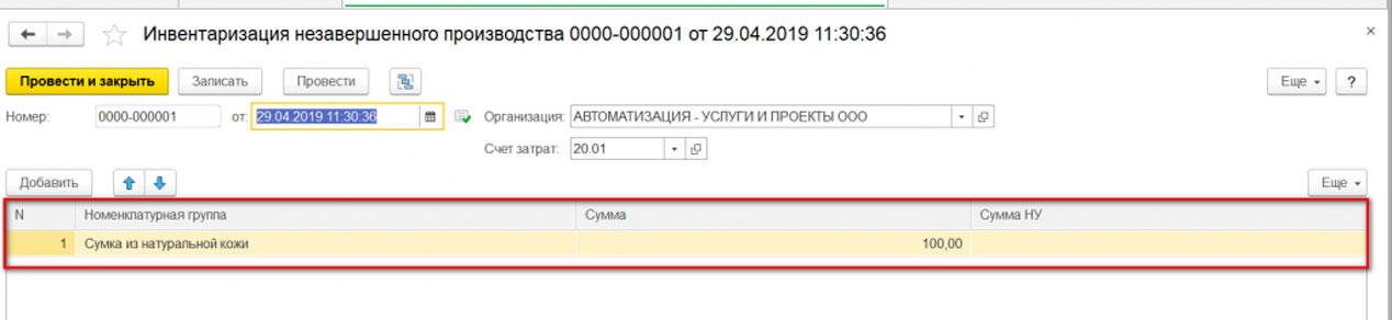 • счета затрат, в котором отражается остаток в НЗП, могут быть выбраны вспомогательное или основное производство: счета 23 или 20.01;
