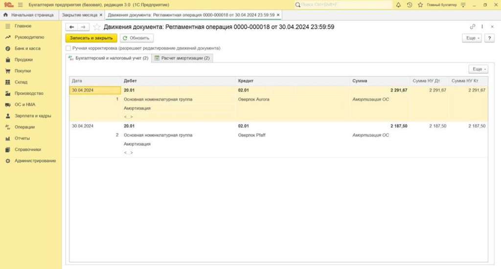 Выполнив подготовительную работу, переходим к закрытию месяца.